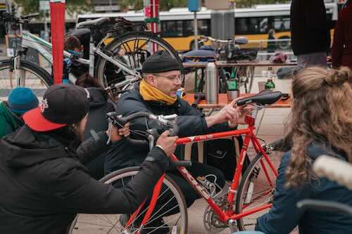 Bei unseren spendenbasierten Pop-up-Werkstätten in und um Stuttgart zeigen wir dir, wie du dein Fahrrad selbst und auf eigene Verantwortung reparieren kannst.